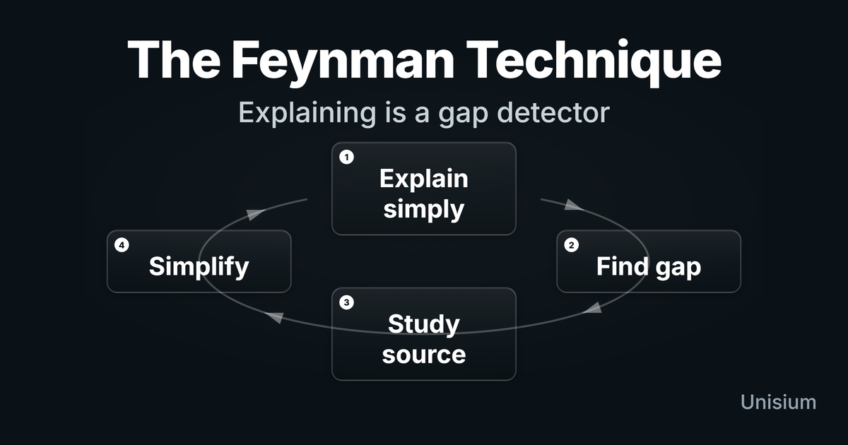 Is the Feynman Technique effective? Yes: it forces self-explanation + retrieval, exposing gaps. Use it to simplify tough physics and math concepts for exams.