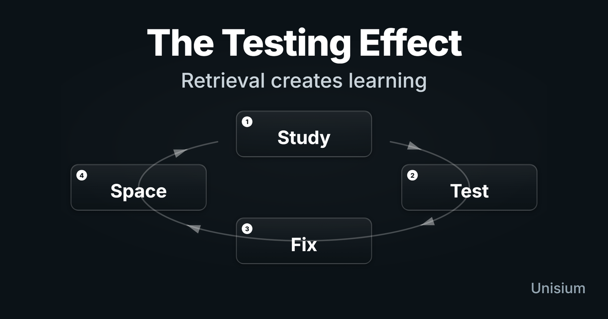 Testing yourself isn't just measuring learning—it creates it. Use posttesting + spacing to lock in knowledge and move it to long-term memory.