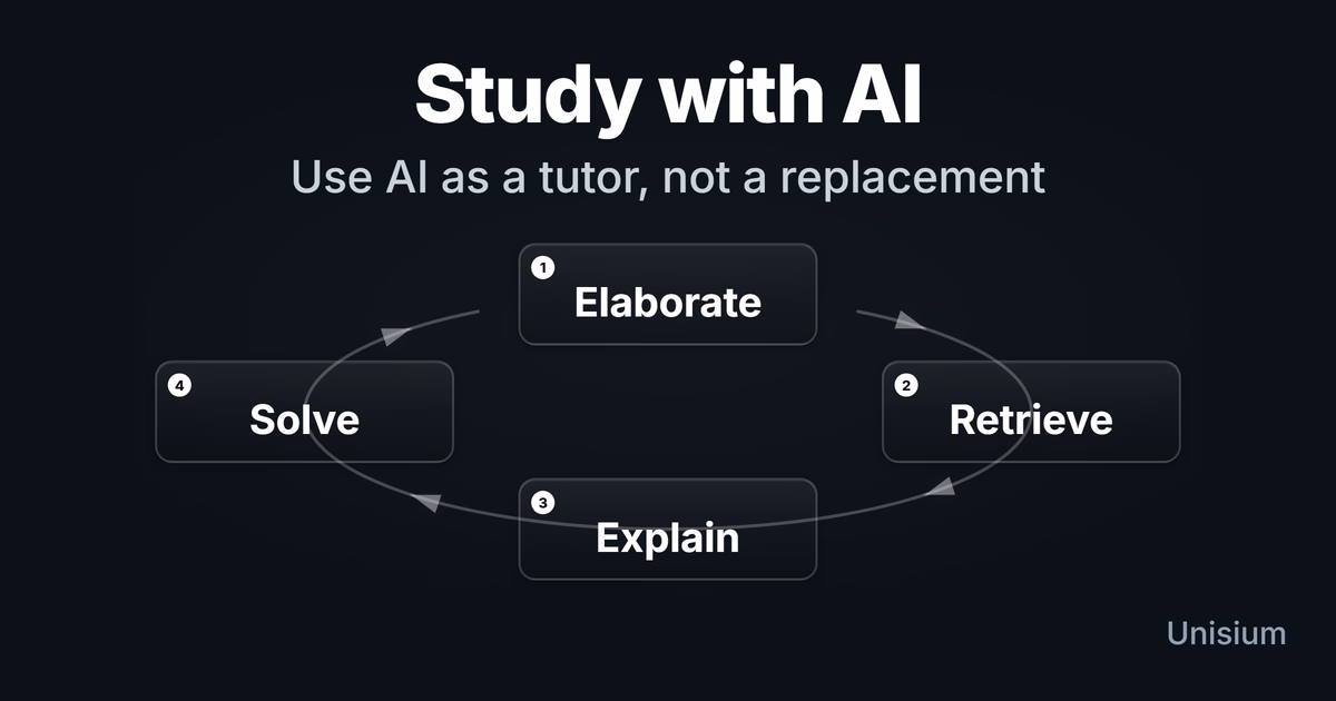Unisium bakes these patterns into study sessions so AI stays in a supportive role: you answer first, explain your reasoning, and then use AI as a critic, hint generator, and constraint checker. That’s the Unisium Study System applied to physics and math tasks where units, conditions, and modeling choices matter. Ready to try it? Start learning with Unisium or explore the full framework in Masterful Learning.