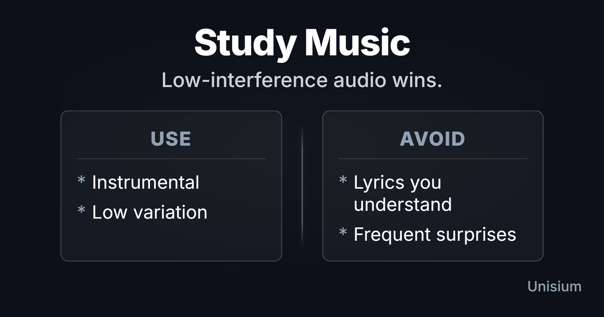 The Unisium Study System leans on high-effort activities like active recall and step-by-step problem solving, where working memory is often the bottleneck. If music helps you show up and stay consistent, keep it—consistency beats perfect conditions.